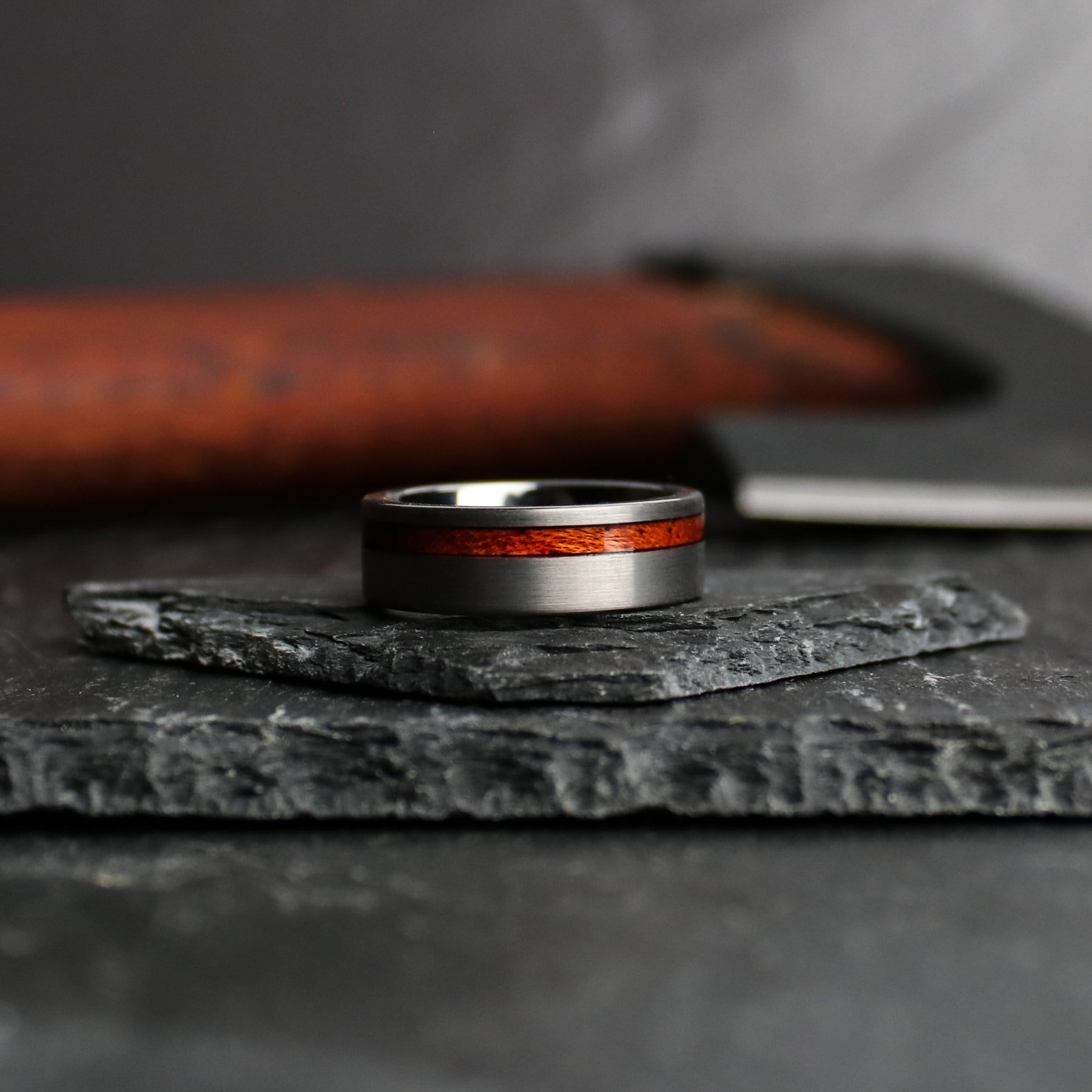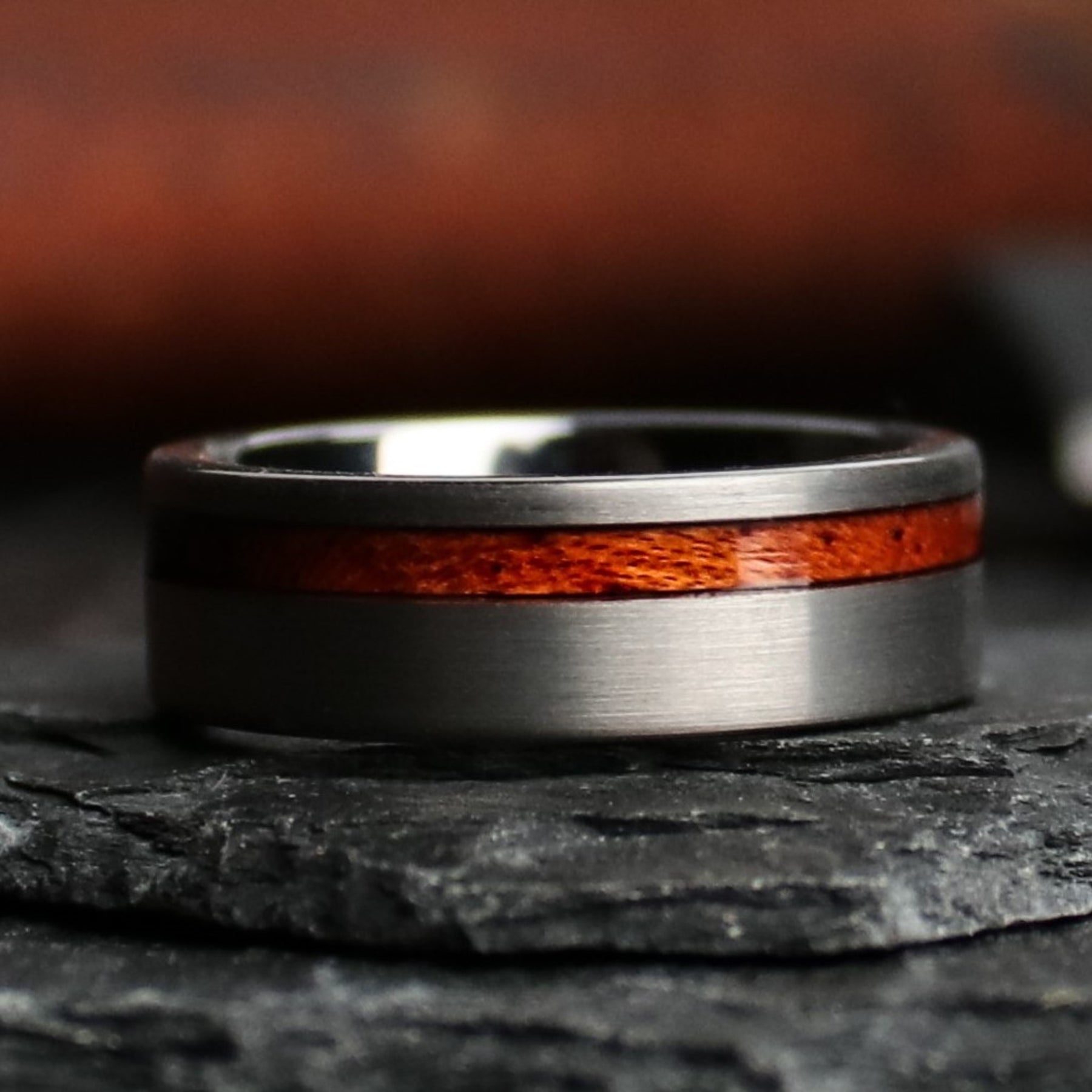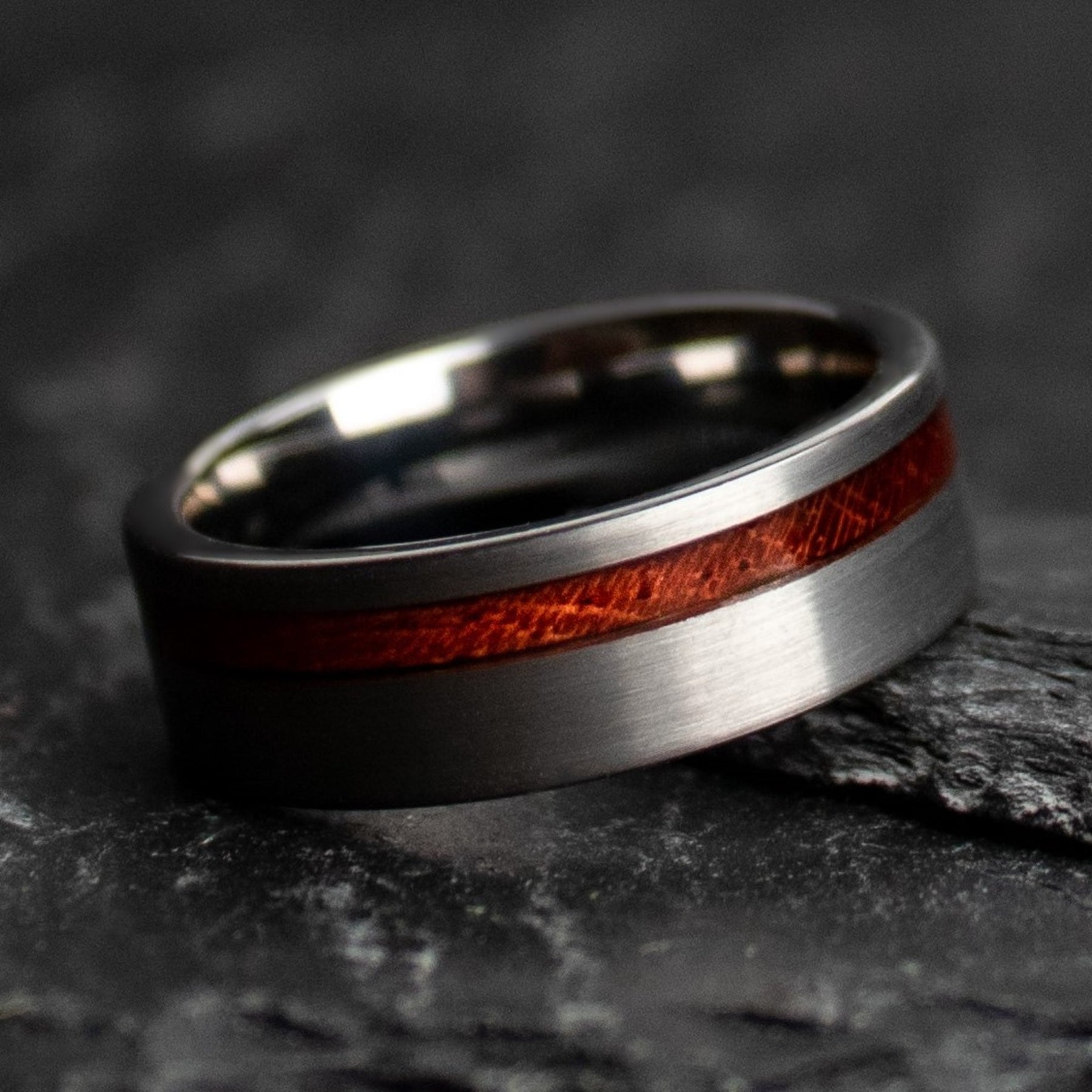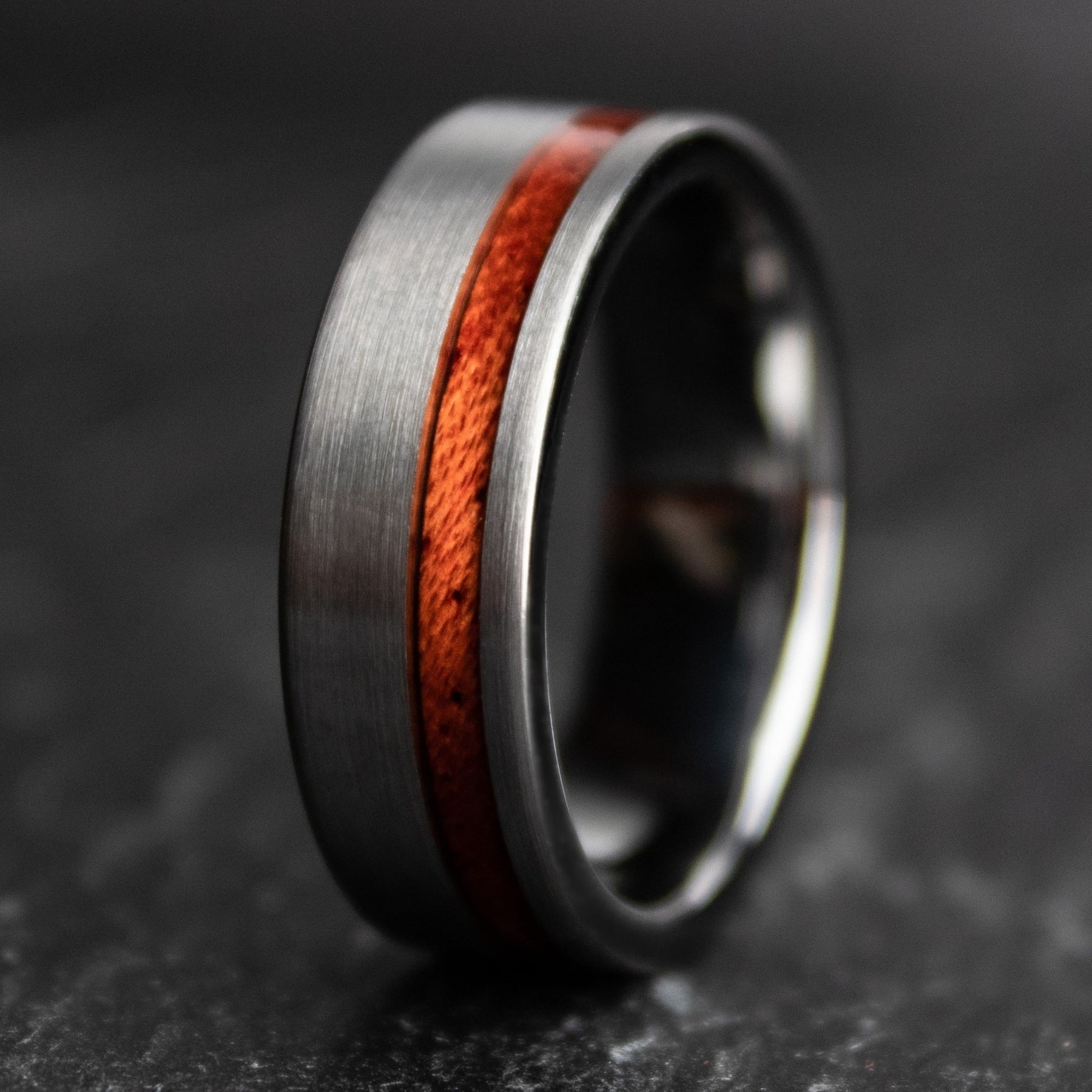 The timber for these bands was harvested from a windfall (storm) on the western slope of the Sierra Nevadas. Sequoia timber ranges from dark crimson red heartwood, which runs through bright orangish/blonde sapwood.