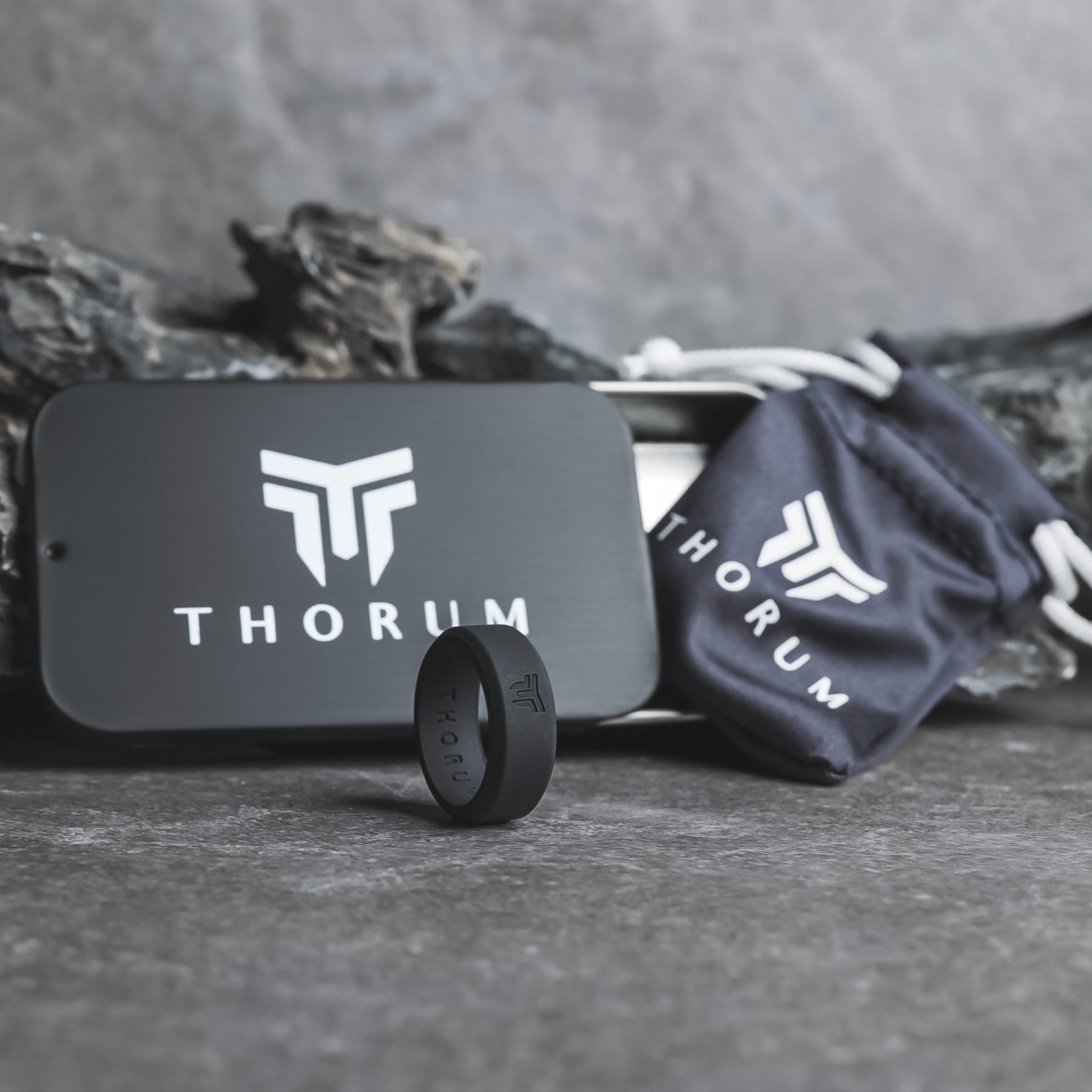 Every Thorum silicone ring includes a drawstring storage bag, and a reusable storage tin.