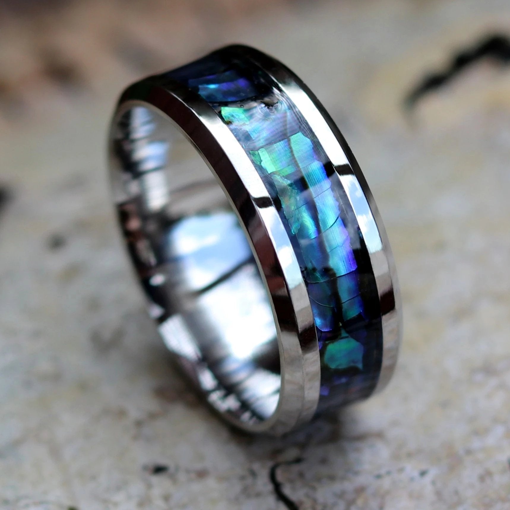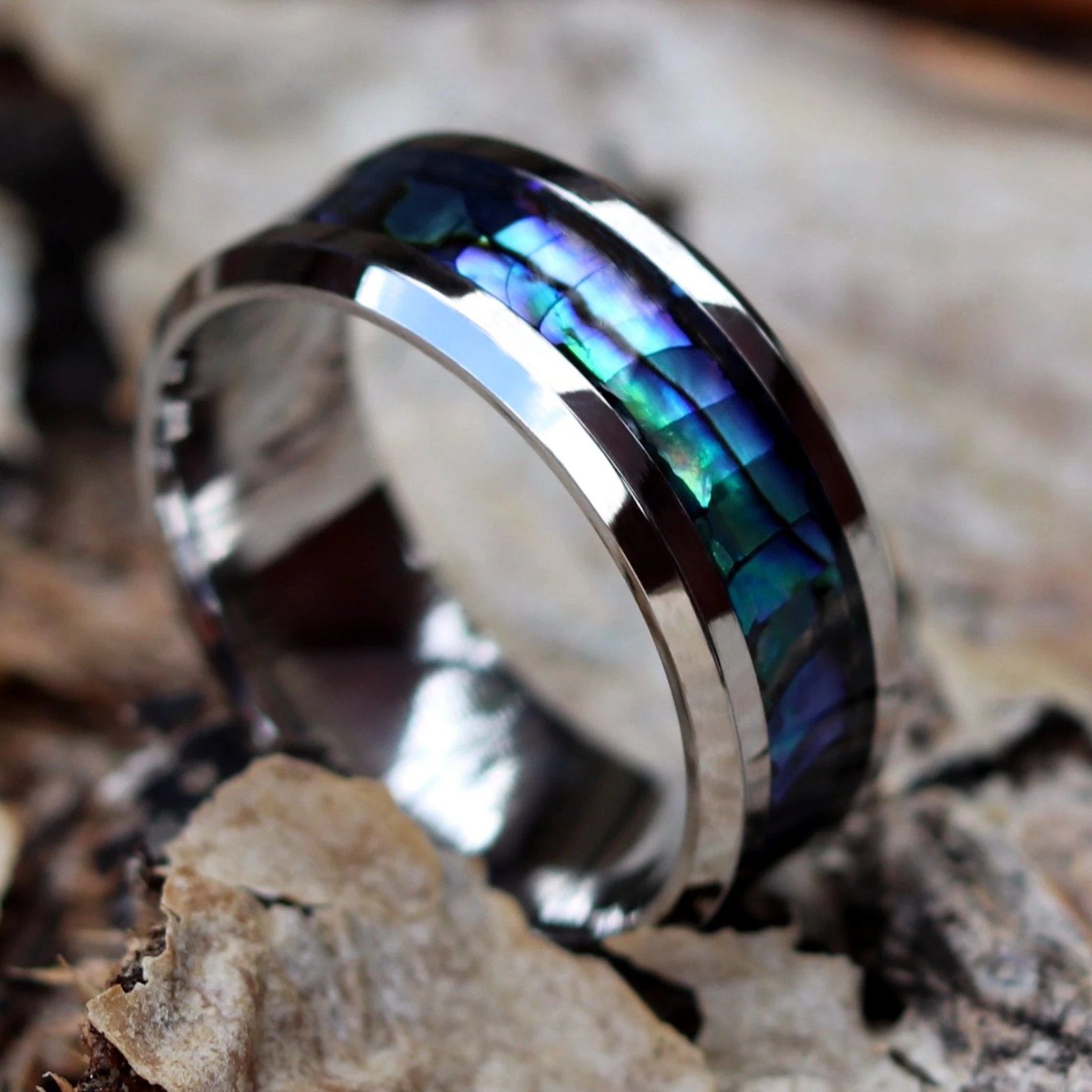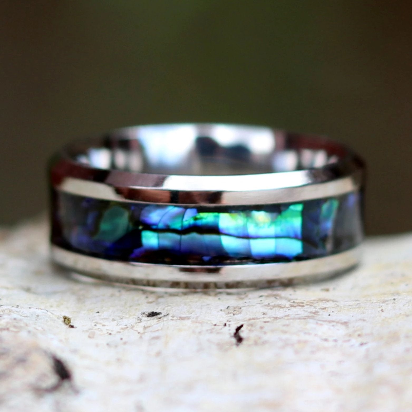 This Abalone Shell ring is perfect as any wedding ring, engagement ring, promise ring, or for any occasion. Tungsten Carbide has a gorgeous silver aesthetic. I made this design with a chamfered exterior profile for both comfort, and a minimalist modern design.