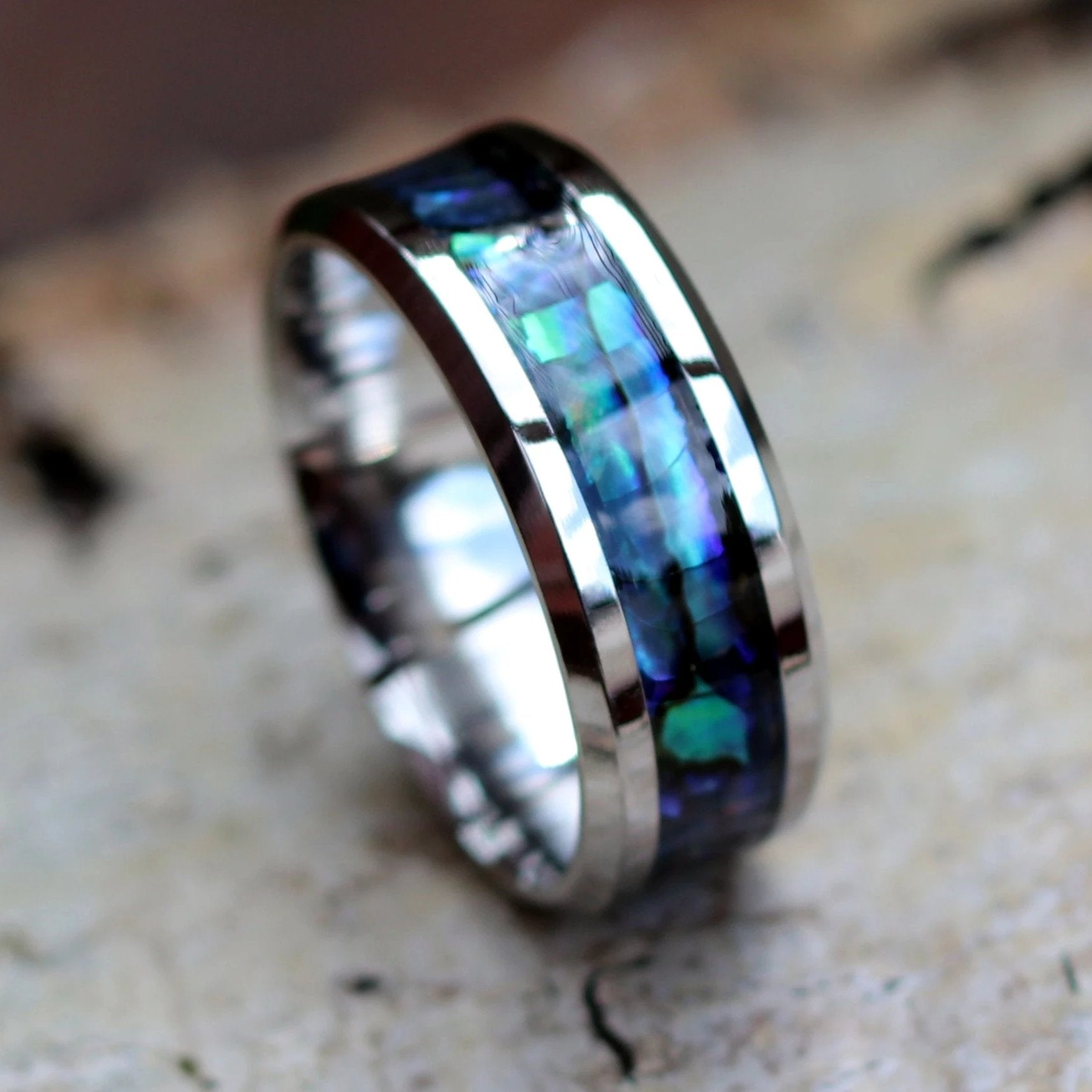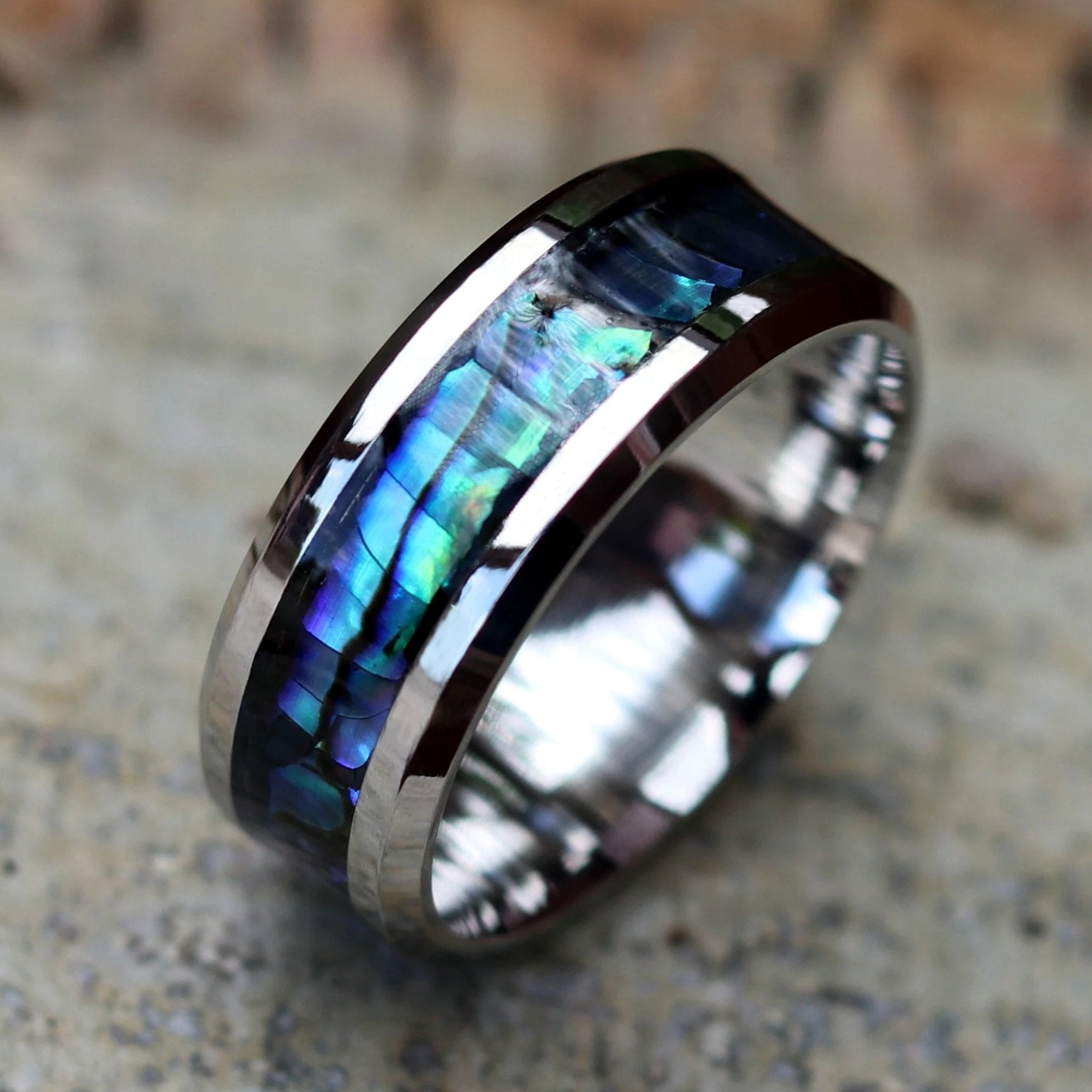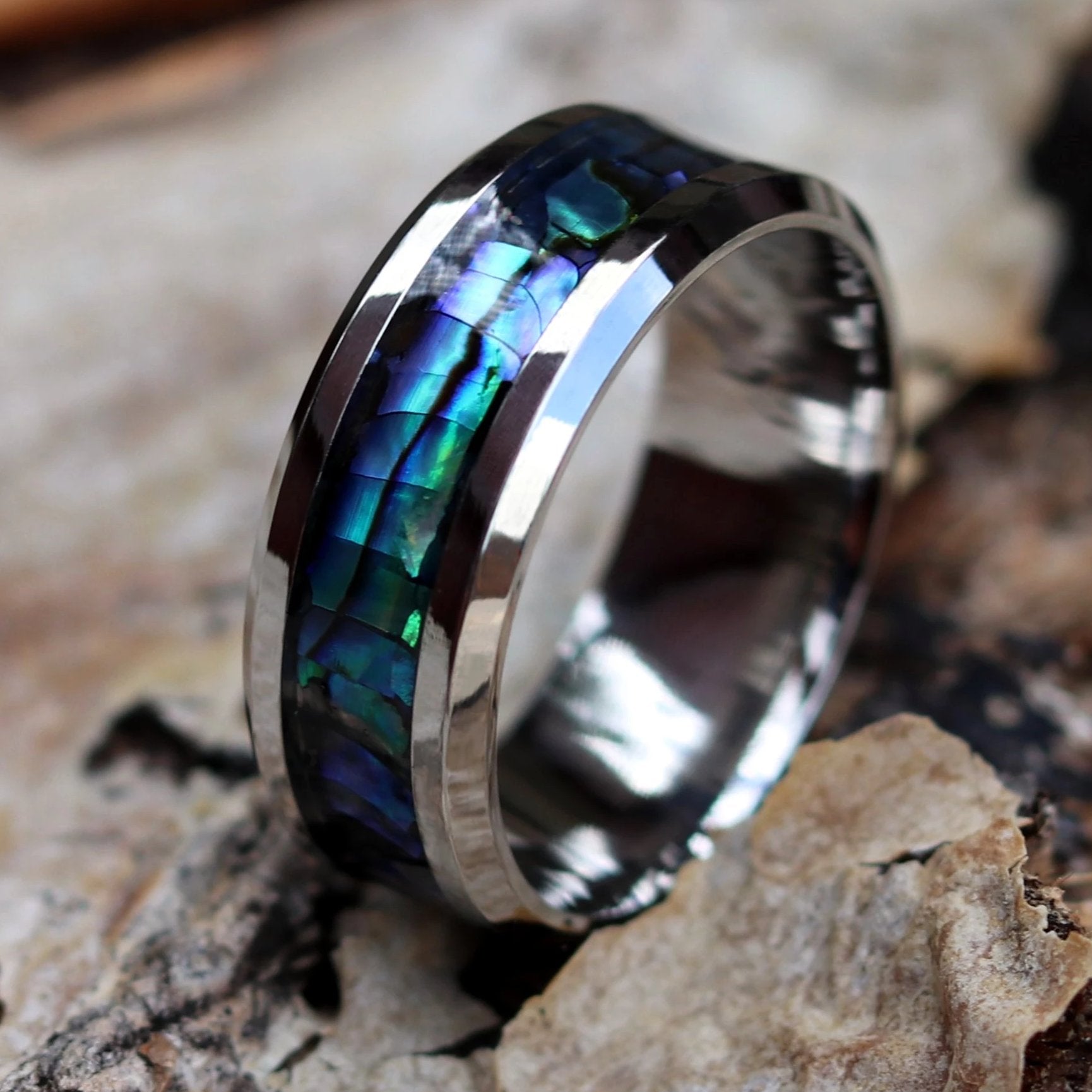 This Abalone Shell ring is perfect as any wedding ring, engagement ring, promise ring, or for any occasion. Tungsten Carbide has a gorgeous silver aesthetic. I made this design with a chamfered exterior profile for both comfort, and a minimalist modern design.